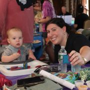 Emily O’Donohue, one of many in the family who attended the musical tribute to Tim, pictured here with her 11 month old daughter, Parker. Photo Credit: Kathy Kahn