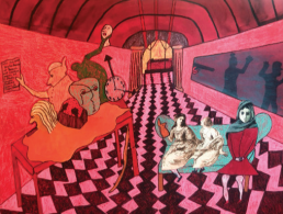 The first thing one notices about Lynn Stein’s work is how she goes beyond the surface and imbues her figures with history and dreamlike qualities. The figures depicted are very much friends she has created for herself, sourced from images of found photographs. In The People You Think You Know, Stein works in series and creates her art with a passion for exploring what makes us unique. She paints what she wants, what she needs, and who and what she wants to be. As a painter and vocalist, Stein’s art forms overlap. The canvas and stage serve as a grounding for the conversation. Both contain drama, dynamics, tempo, and shared experience.