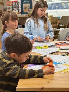Part of the shop’s mission is to gather together both children and adults to use their hands, hearts, and minds exploring simple art, music, and dance. Events reimagine the small space—lined by white pine tongue and groove walls, with hardwood floors and natural sunlight streaming from a skylight—in inventive ways. Homebody Books hosts professionally-led workshops as well as informal crafting sessions throughout the year—for example, an Origami workshop with sessions for kids 4–13; and a Diwali celebration of light, where children gathered on the carpet to make colored lanterns from paper plates. The 2026 lineup so far includes a magic show, dance workshop, and a watercolor workshop; a new Mom and child group Wednesday mornings starting late January; and a discussion of Ellen Galinsky’s new book, The Breakthrough Years, on adolescence, to begin early February.