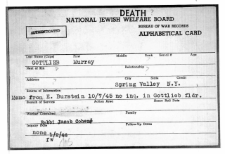 It would be fitting to bring Pvt. Murray Gottlieb’s memory back from the depths of oblivion and to bestow upon him the honor due him, honor that he earned, and honor that he still rightly deserves. Propriety demands that the name of Private Murray Gottlieb be added to Rockland County’s Memorial Wall so that he no longer be forgotten.
